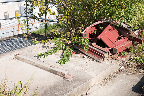 この場所は堤防道路沿いの空き地で、誰かの邪魔になるようなところでもないから放置すればいいのにそうしなかったのは、老朽化で壊れてしまったのだろうか。